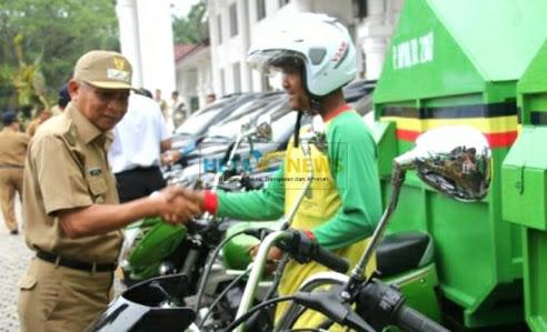 Wakil Bupati Asahan Surya memberikan bantuan kendaraan dinas petugas kebersiham. |