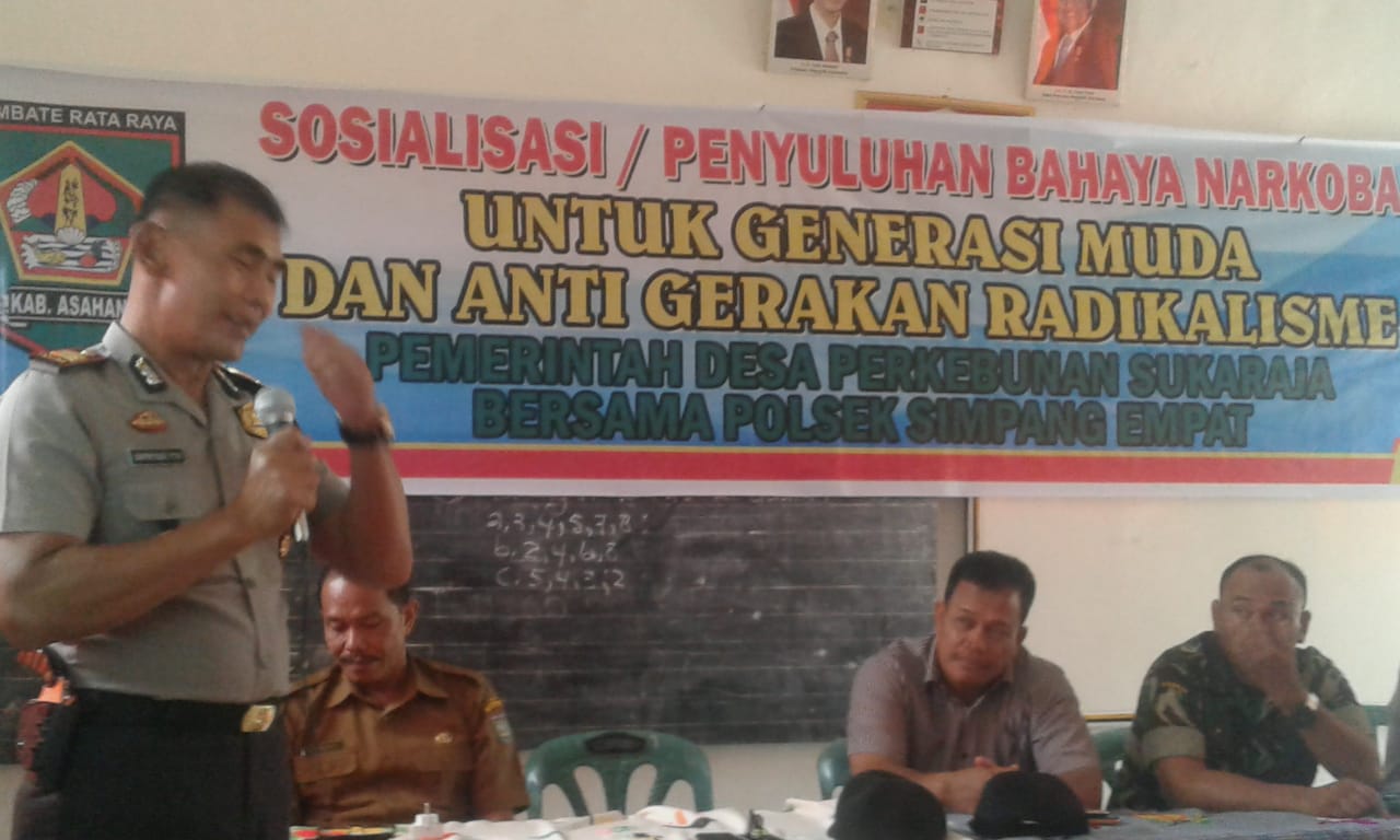 Kapolsek Simpang Empat AKP Supriyadi YTO SH mengatakan Polsek Simpang Empat bersama unsur tiga pilar plus melaksanakan penyuluhan kepada masyarakat desa perkebunan Sukaraja yang diikuti oleh warga desa, tokoh agama, tokoh masyarakat serta tokoh pemuda setempat.