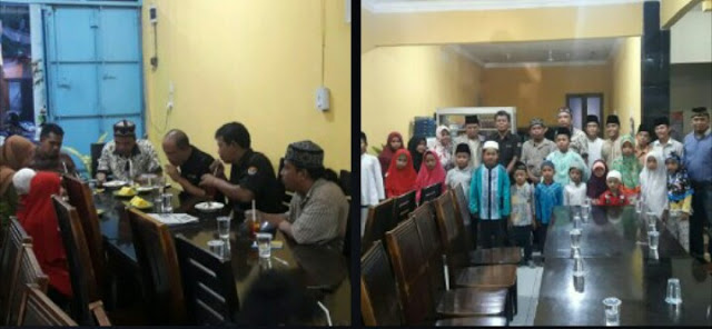 Kru media online taslabnews.com foto bersama anak yatim di acara buka bersama di rumah makan Etek di Jalan SM Raja Kusaran. |