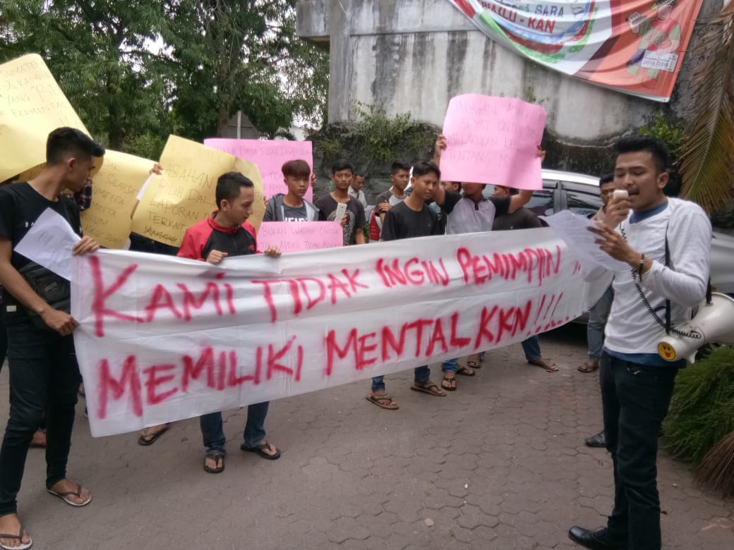 Aksi tersebut terkait laporan masyarakat Kecamatan Simpang 4 terkait pertemuan Salah satu paslon gubsu dengan puluhan kades di kantor Apdesi Asahan.