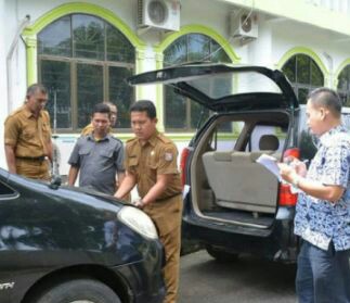 Pendataan kedaraan dinas Pemko Tanjungbalai yang akan dilelang. |