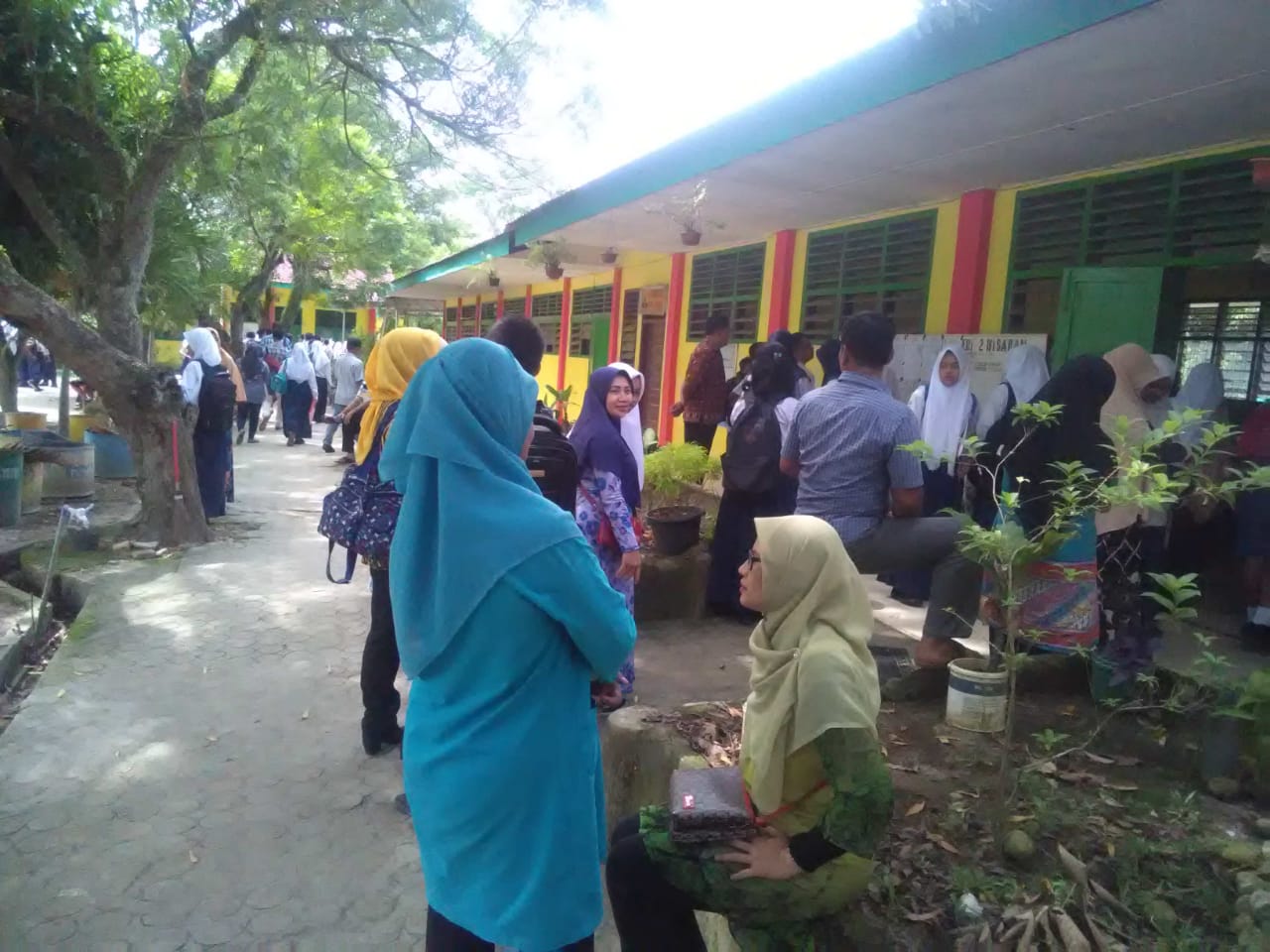 Omak-omak yang mendampingi anaknya mendaftar ulang di SMA Negeri 2 Kisaran.
