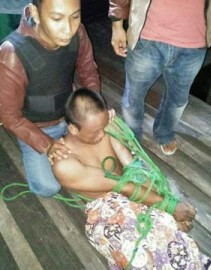 Bersamaan dengan itu pula warga yang sudah ramai mengejar berhasil mengamankan Udin. Pria itu kemudian diikat dengan tali dan ditelanjangi.