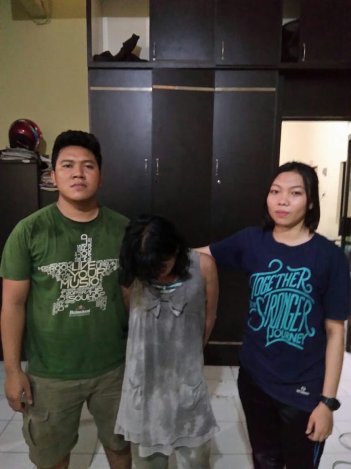 | Ibu rumah tangga di Tanjungbalai tersangka narkoba saat ditangkap polisi. |