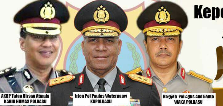 Kapoldasu Irjen Pol Paulus Waterpau, Waka Poldasu Brigjen Pok Agus Andrianto, Kabid Humas Poldasu Kombes Tatan Dirsan Atmaja |