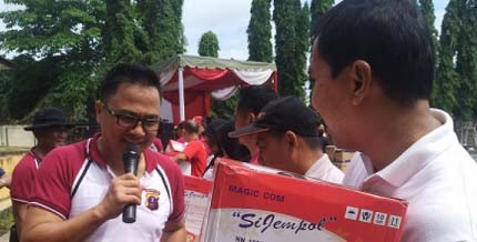 Kapolres Asahan AKBP Yemi Mandagaisaat menyerahkan hadiah kepada pemenang. |