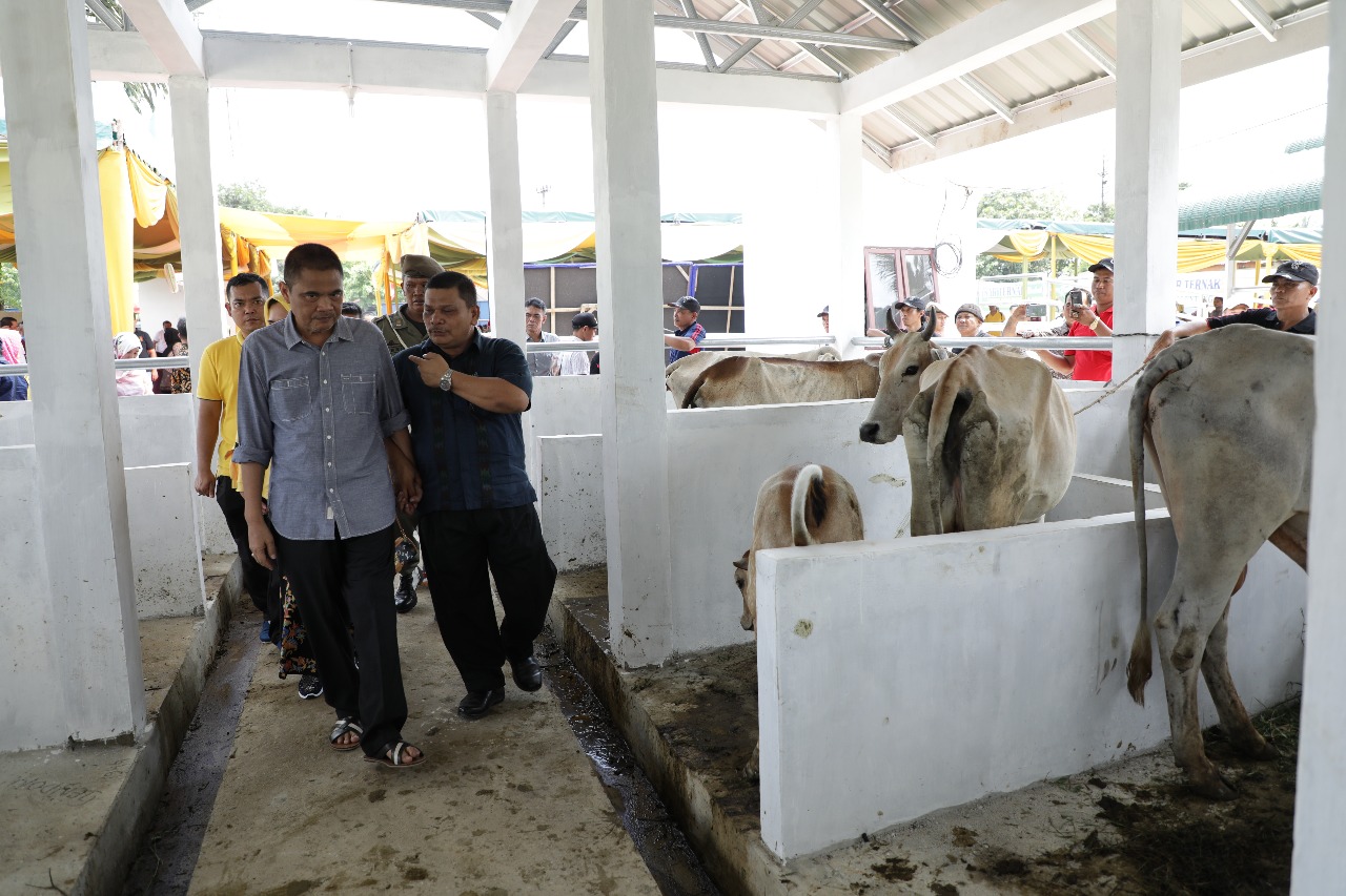 | Bupati Asahan Taufan Gama Simatupang memantau pasar ternak. |