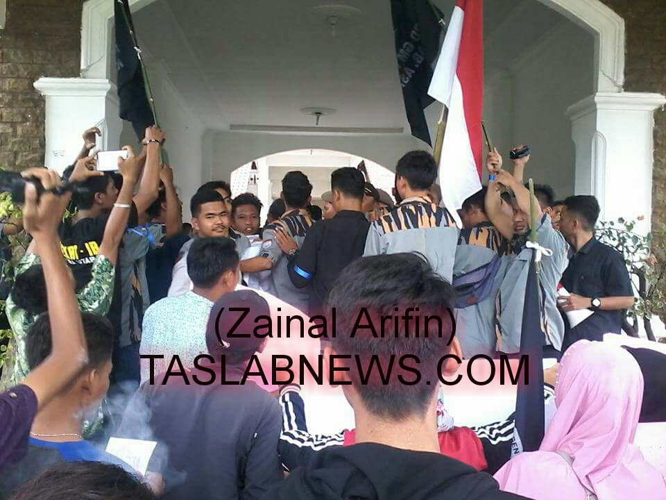 Massa yang berunjukrasa di kantor DPRD Asahan |