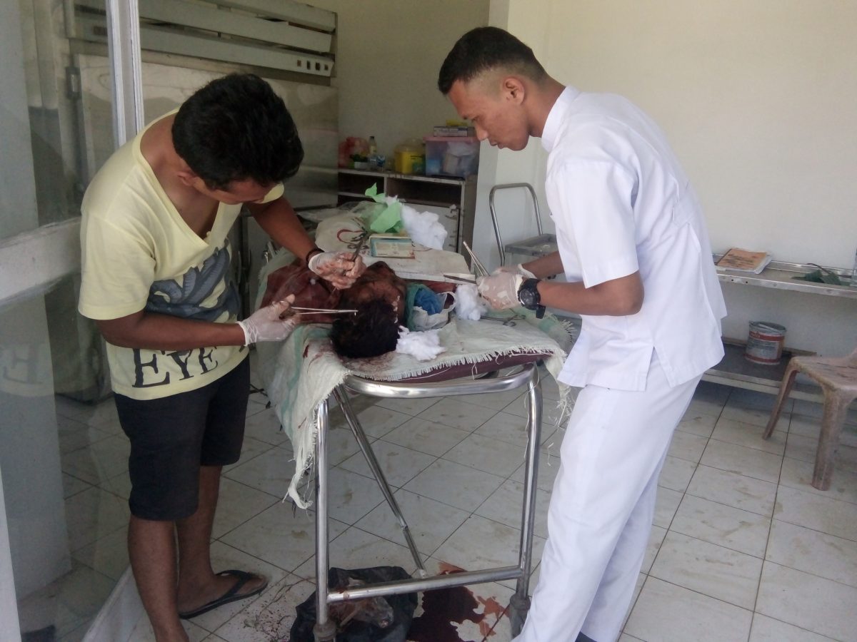 | Korban saat berada di rumah sakit umum HAMS Kisaran. |