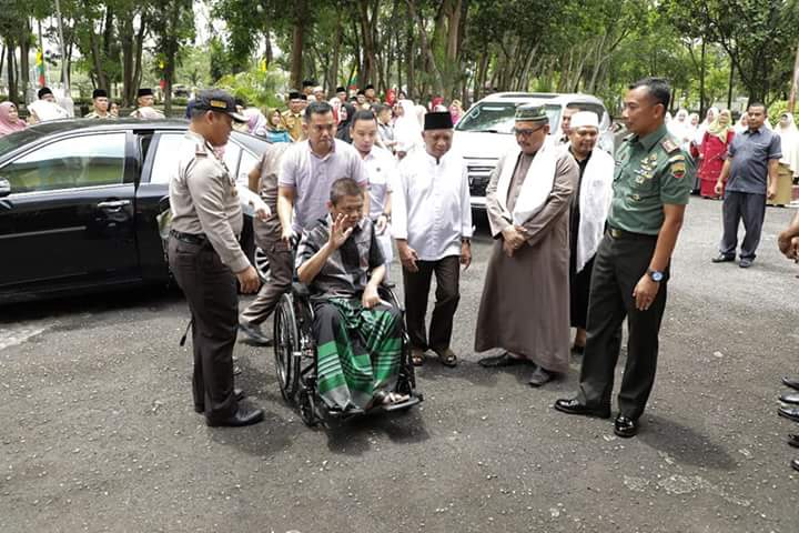 | Bupati Asahan Taufan Gama Simatupang menaiki kursi roda akibat sakit yang dideritanya. |