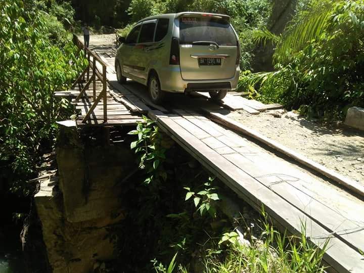 “Abang lihatlah jembatan ini sudah pecah-pecah papannya apalagi batu batunya berserakan,” ucapnya.