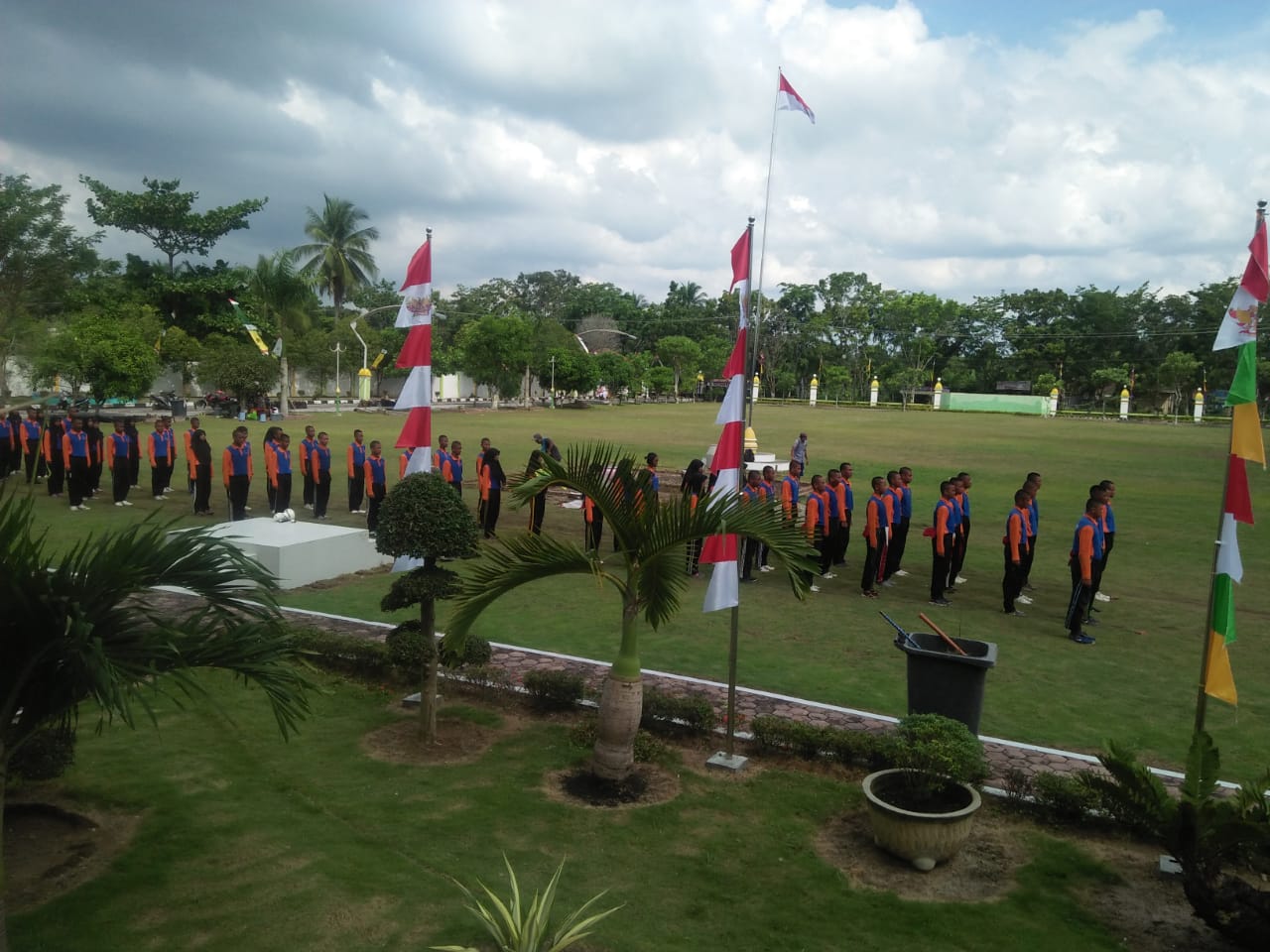 anggota Paskibraka saat sedang menjalani latihan di halaman Kantor Walikota Tanjungbalai, Rabu (1/8).