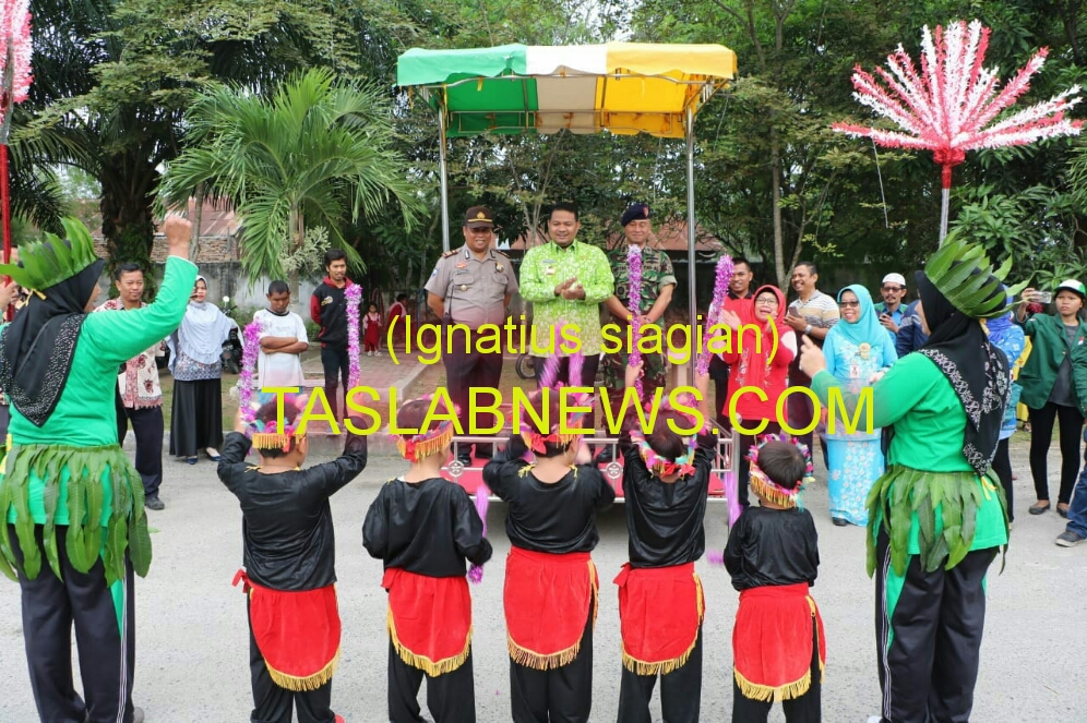 Walikota Tanjungbalai H M Syahrial didampingi Danlanal TBA dan dari Polres Tanjungbalai saat menyambut pawai anak dalam Peringatan Hari Anak Nasional 2018.