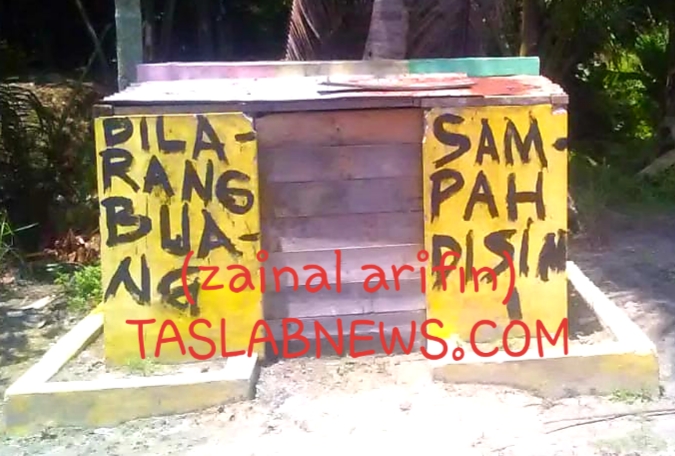 TASLABNEWS, Asahan – Ada hal yang tak lazim terlihat pada tempat (bak) sampah di Jalan Jeruk Kelurahan Sentang, Kecamatan Kisaran Timur Kabupaten Asahan. Pada dinding depan bak sampah yang tertutup seng tersebut tertulis ‘Dilarang Buang Sampah Disini’, Sabtu (1/9).