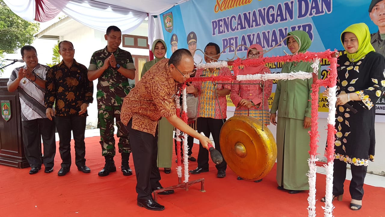 Pemukulan gong menandai dimulainya bakti sosial TNI KB – Kesehatan se-wilayah Kodim 0208/AS. |