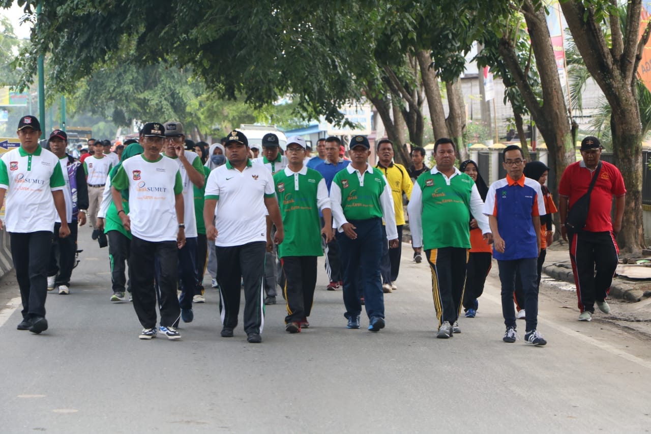 Walikota Tanjungbalai H M Syahrial SH MH saat mengikuti acara jalan sehat Bulan Panutan Pajak Daerah di Kota Tanjungbalai, Sabtu (16/9) |