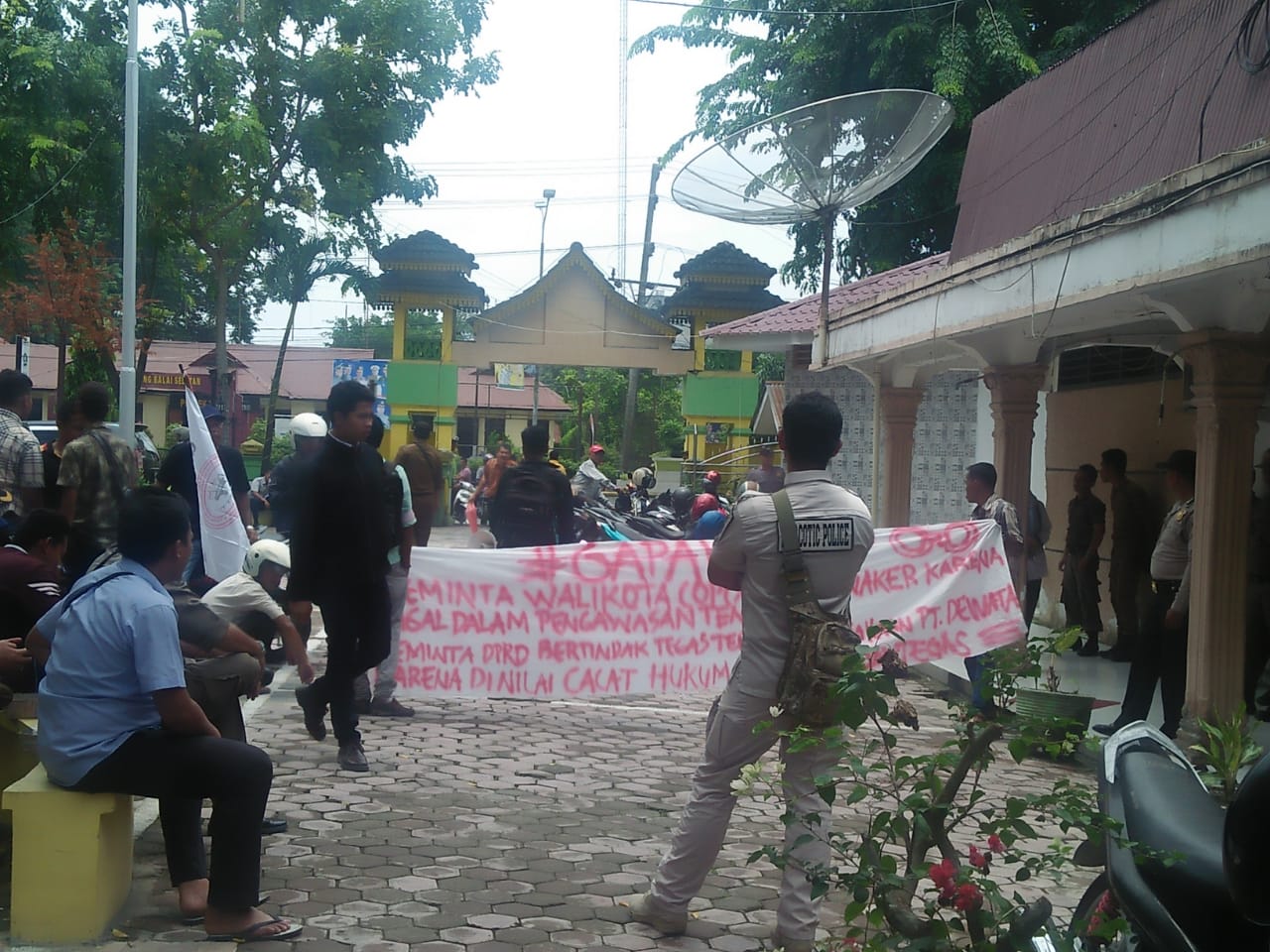 | Para pengunjuk rasa melakukan aksi di halaman Kantor DPRD Kota Tanjungbalai, 19/9). |