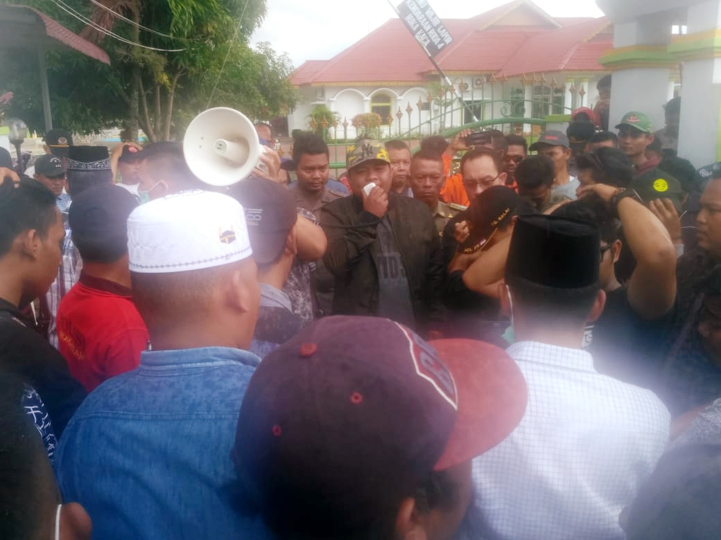 | Massa menyampaikan tuntutan kepada Pemerintah Kota Tanjungbalai. |
