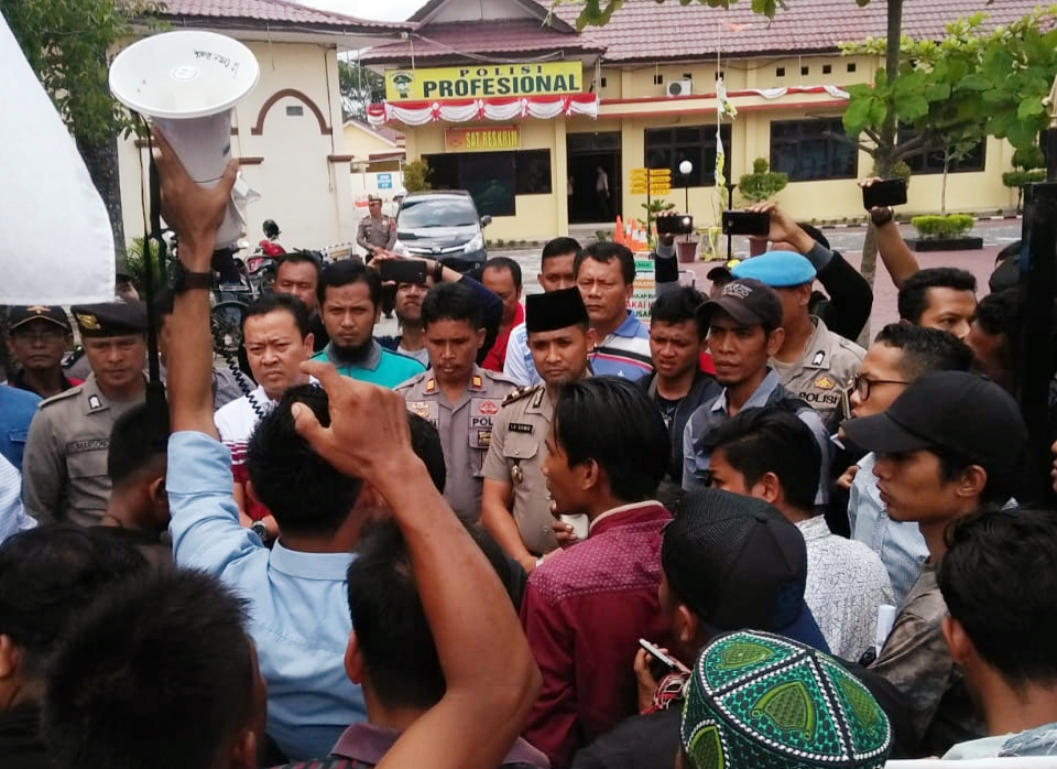 Sebelumnya, massa juga berunjuk rasa di depan MapolresTanjungbalai dalam orasinya, massa mendesak Kapolres Rohil bertanggung jawab dan menyelesaikan kasus penembakan nelayan kerang yang mengakibatkan 1 orang tewas dan 2 lainnya kritis.