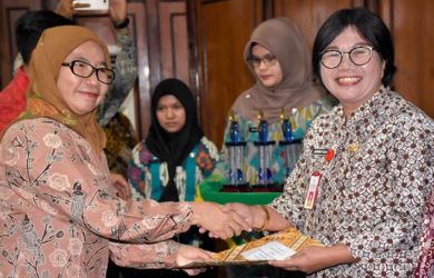 Sekdaprov Sumut Sabrina, Jumat (26/10/2018) memberikan Raskin Award. |