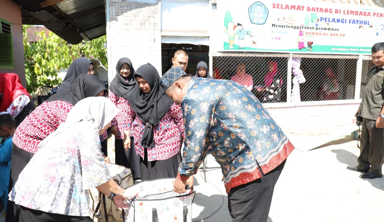 Winda Fitrika Taufan Gama memberikan dukungan kepada lembaga pendidikan Pelangi Fathul dengan menyerahkan perlengkapan sekolah kepada siswa siswi.