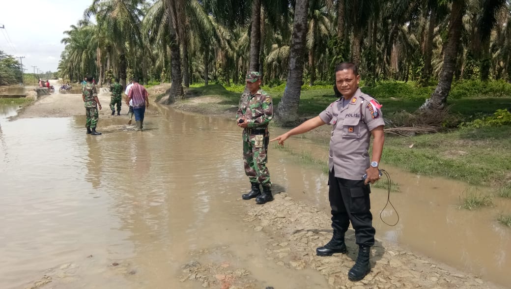 Kapolsek Tinjau Banjir Di Desa Perkebunan Hessa
