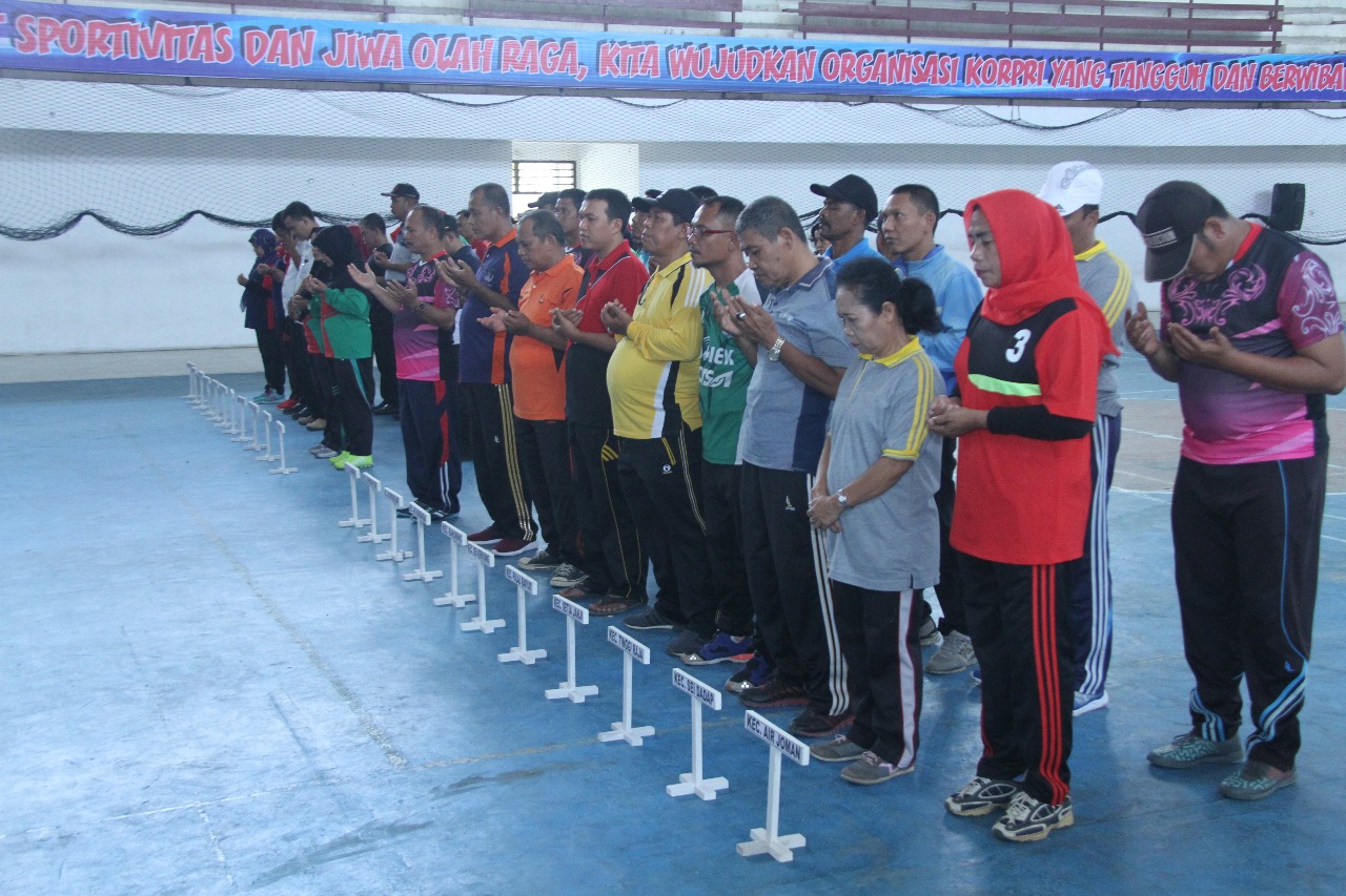 Asisten II, Jhon Hardi Nasution menyampaikan sambutan Bupati Asahan saat membuka kegiatan Porkab Korpri Asahan IV/2018. |