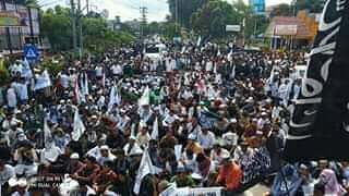 Aksi ribuan umat islam membela kalimat tauhid di Tanjungbalai. |