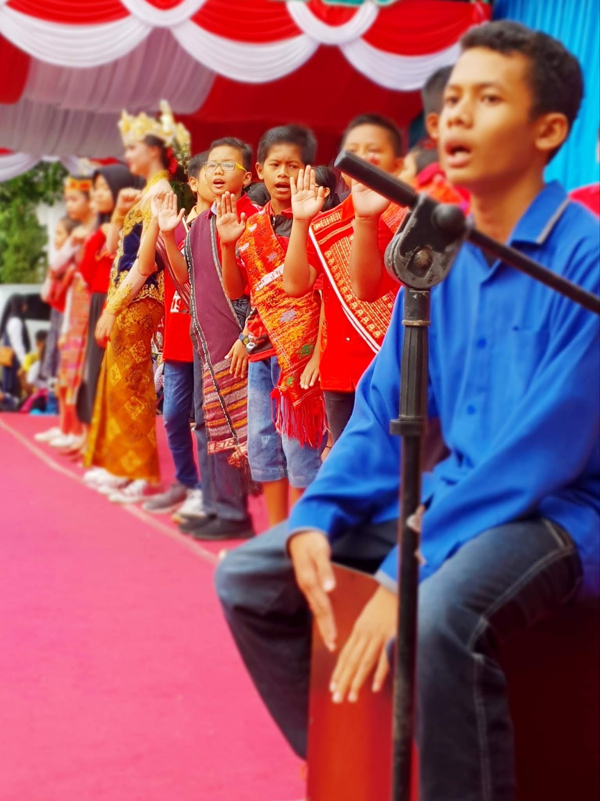Selanjutnya suara merdu dari siswa siswi SMP dan SMA terdengar menghiasi sesi kedua kegiatan pentas seni, yang dimulai pukul 14.00 Wib. Tidak kalah menarik, tarian daerah, fashion show pakaian daerah dan pakaian modern.