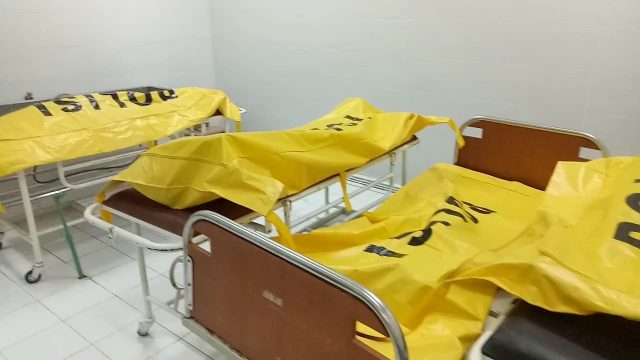 Jenazah James beserta istri dan dua anaknya yang masih balita tiba di rumah sakit. |