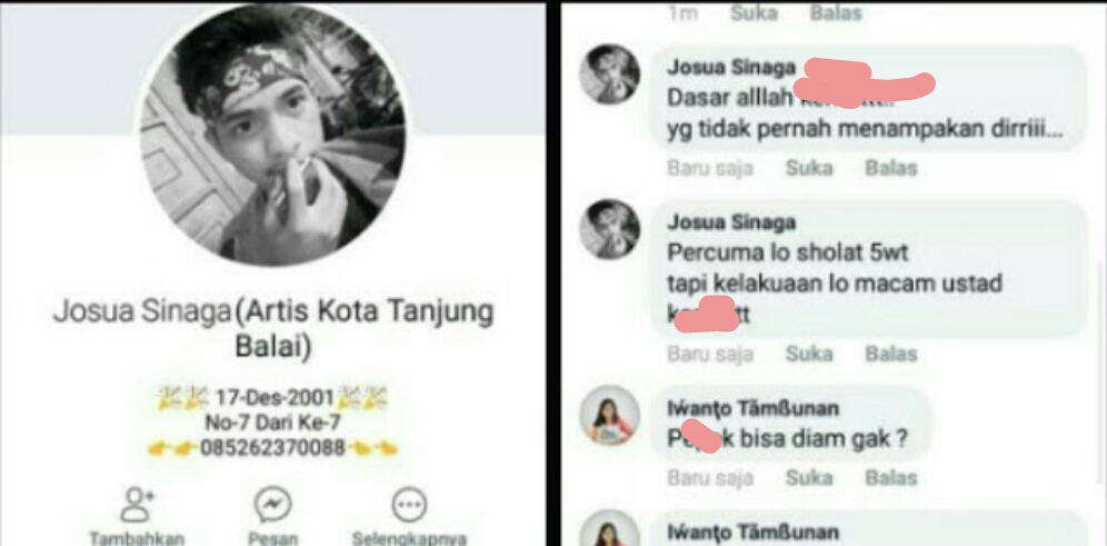 Postingan Josua Sinaga warga Tanjungbalai yang menghina umat islam.