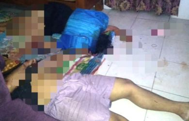 “Lalu tadi anggota kami masuk dan betul menemukan beberapa kecurigaan antara lain ada dua jenazah yang berlumuran darah suami istri ditemukan di ruang tv, sedangkan anak-anaknya ditemukan di tempat tidurnya dengan kondisi sudah tidak bernyawa,” ungkapnya.