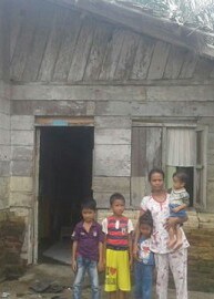Istri Baharuddin dan empat anaknya foto di depan rumah. |