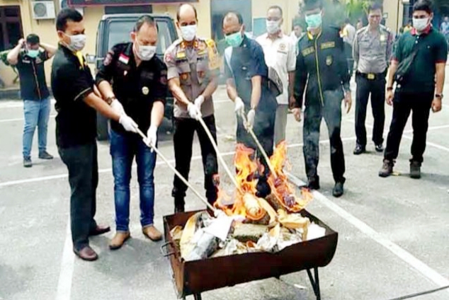 “Hari ini barang bukti yang dimusnahkan antara lain 20.635,76 gram ganja kering, 582,44 gram sabu dan 256 butir pil ekstasi dari 35 kasus, 43 tersangka. Ini tangkapan dari 8 Oktober sampai dengan 6 November 2018,” ujar Kapolres Labuhanbatu, AKBP Frido Situmorang didampingi Kasat Reskrim Narkoba Polres Labuhanbatu, AKP I Kade Herry.