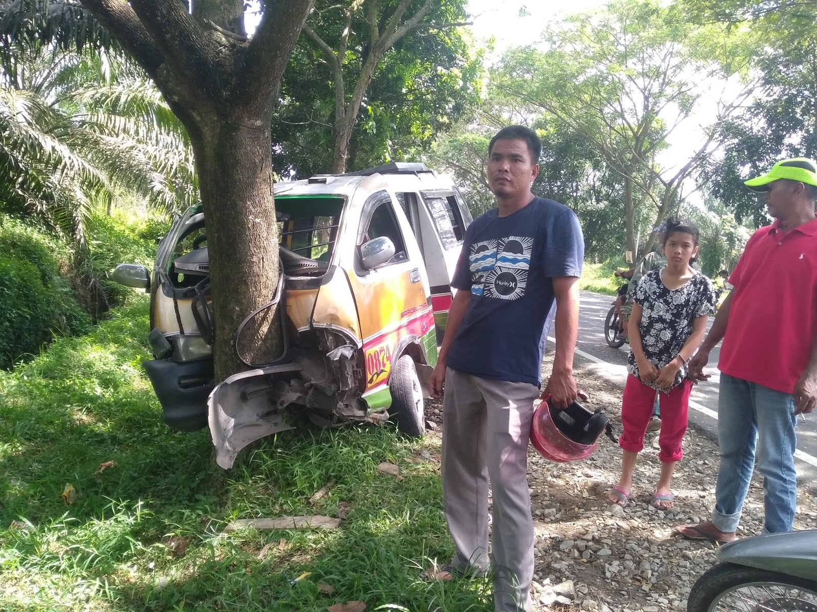 TASLABNEWS, BATUBARA-Lakalantas terjadi di jalinsum Batubara-Asahan km 127-128, Sabtu (17/11/2018). Bus Sepakat BK 1772 TU yang menghantam pohon di pinggir jalan dan Terios BK 1830 JT yang masuk ke parit.