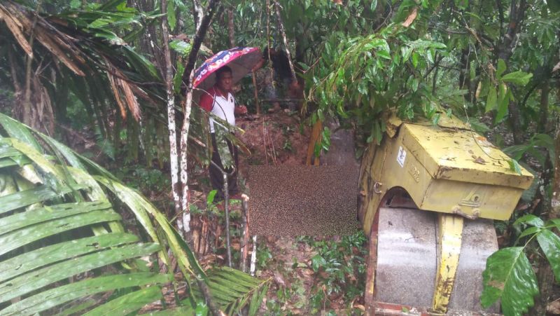 tiba-tiba Walas tersebut mundur dan masuk ke dalam parit.