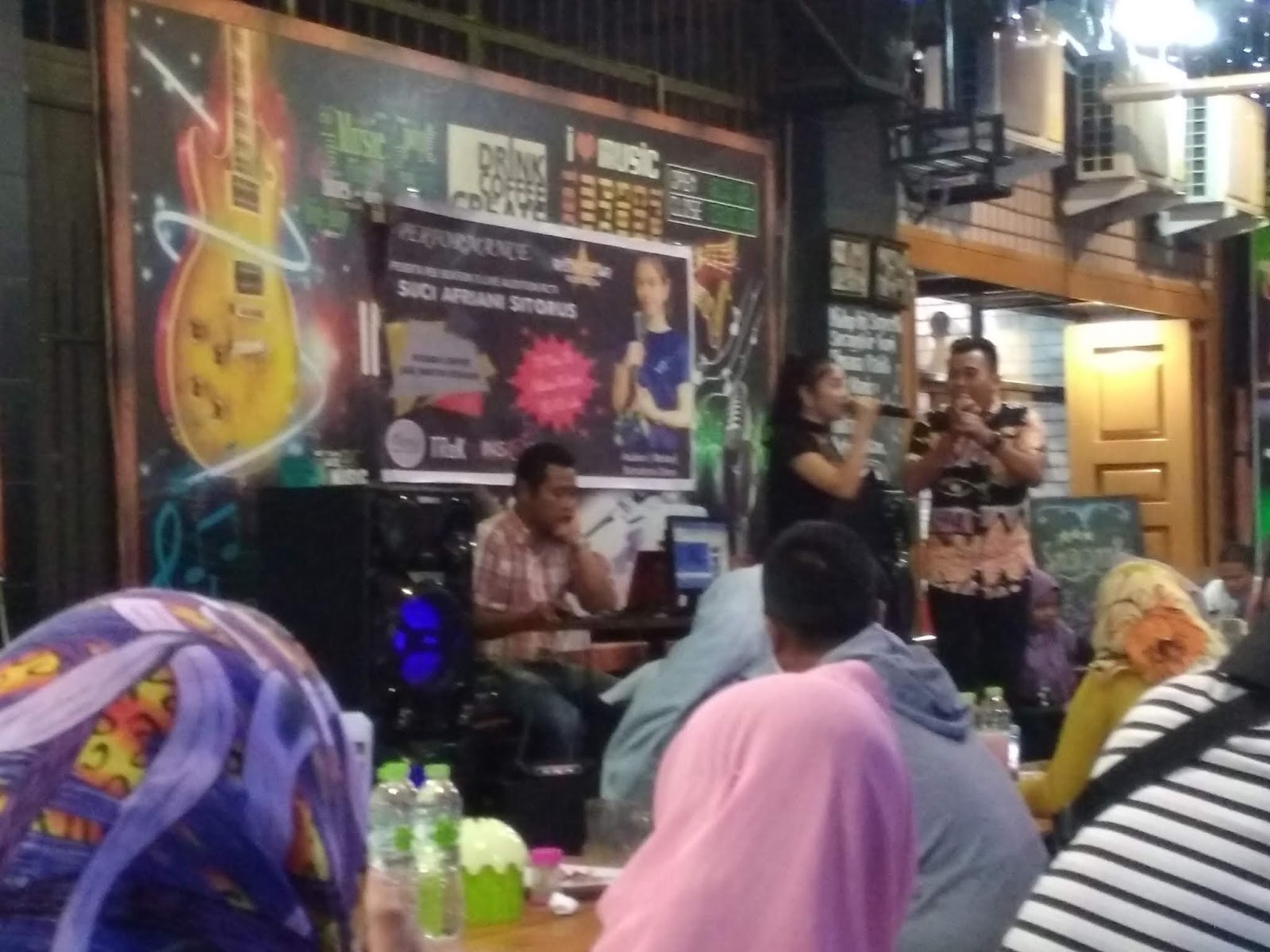 TASLABNEWS, ASAHAN- Para pengunjung kafe Insomia di Jalan Kartini, Kisaran merasa terhibur atas kehadiran Suci Afriani Sitorus peserta RSI Season 3 Live Audition RCTI, Selasa (13/11).