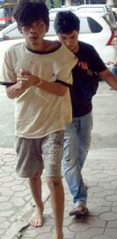Rinto tersangka pencuri Hp di rumah Kapolres Simalungun. |