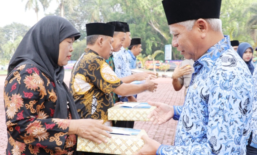 Usai acara peringatan, Wakil Bupati Asahan memberikan penali kasih bagi ASN yang telah purna bhakti pada tahun 2018 dan bantuan sosial duka cita bagi ASN aktif yang meninggal dunia.