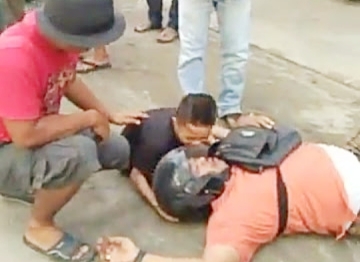 Reni Ariani tergeletak di jalan sebelum dibawa ke rumah sakit. |