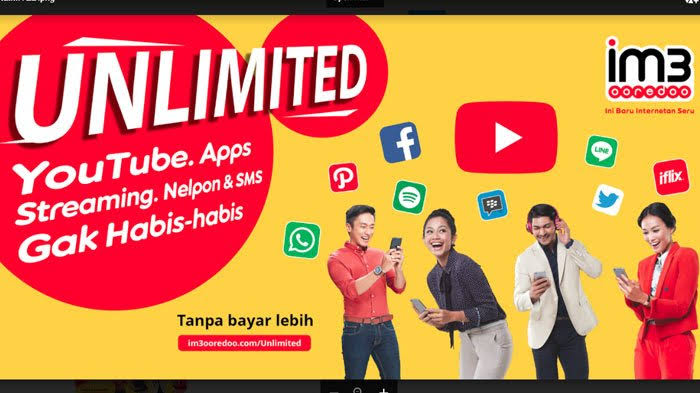 internet ini; Unlimited akses Aplikasi sosial media seperti Instagram, Facebook, Twitter, aplikasi streaming video dan musik seperti YouTube, iflix, Spotify hingga aplikasi transportasi online.