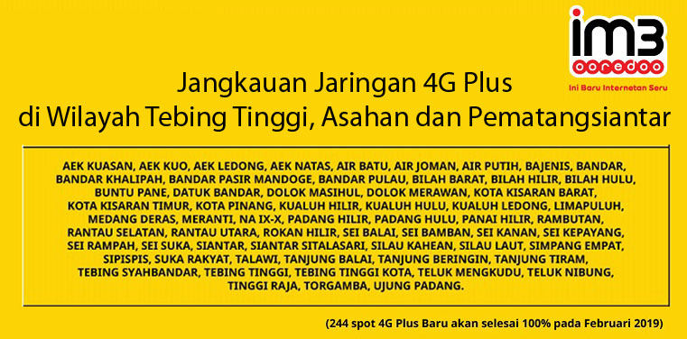 Saat ini, Indosat Ooredoo telah membangun jaringan 4G Plus di hampir seluruh wilayah Kota Tebing Tinggi.