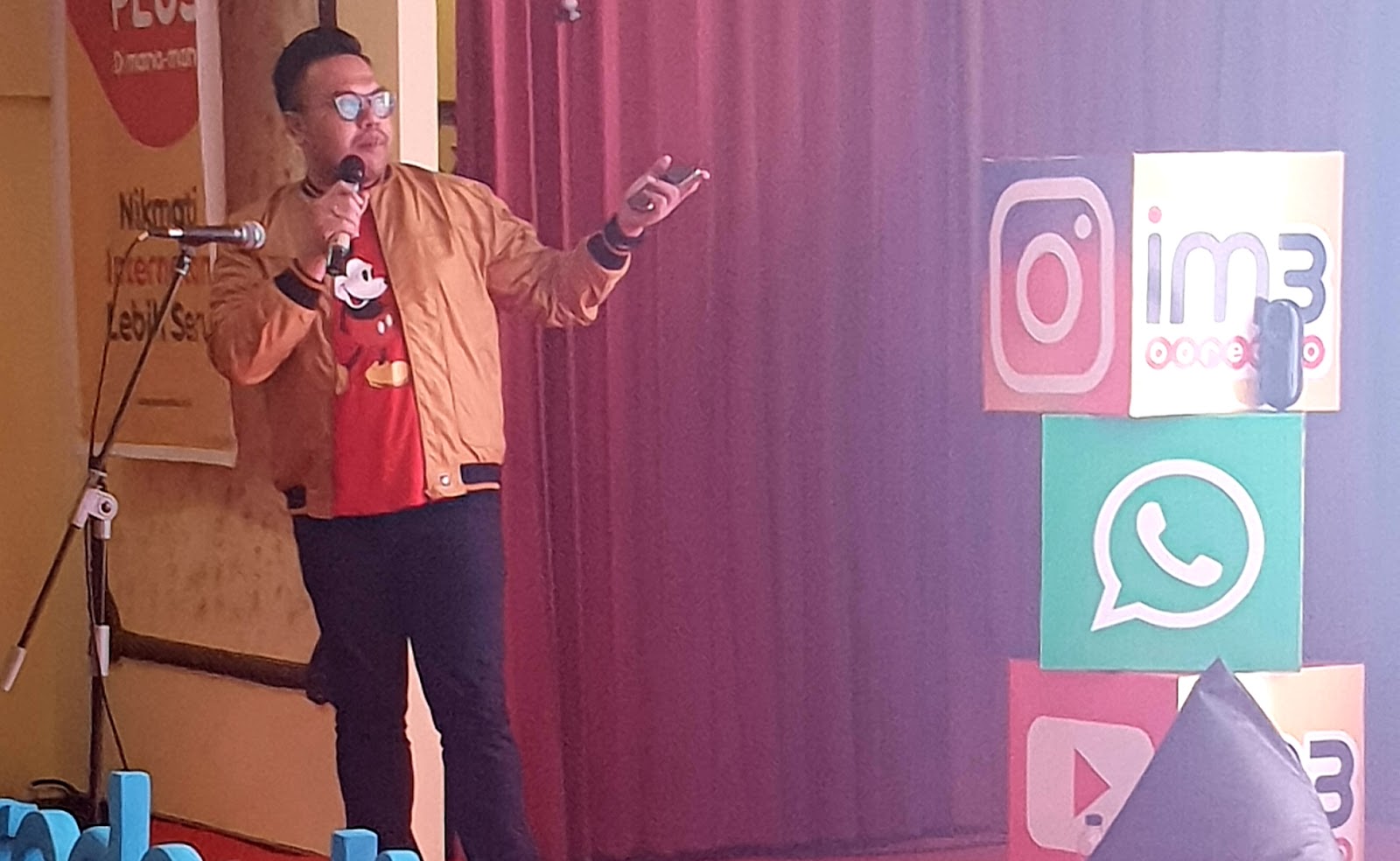 Alvin Matonda A.K.A. Mamak Gardam saat berbagi pengalaman pada acara IM3 Ooredoo Digitalk. |