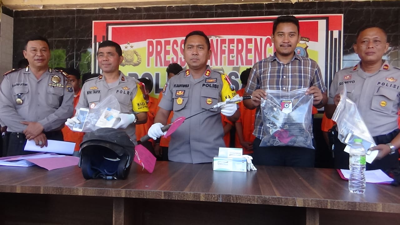 Mereka ditangkap karena terlibat kasus pencurian dengan pemberatan (Curat) dan pencurian dengan kekerasan (Curas). Dari para tersangka disita barang bukti 2 unit sepeda motor, 2 unit handphone, 3 unit mesin cuci dan 2 tabung gas ukuran 16 kilogram.