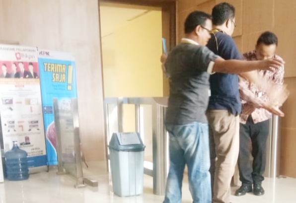 Pemeriksaan dilakukan terhadap tamu yang akan masuk ke ruang Dumas KPK. |
