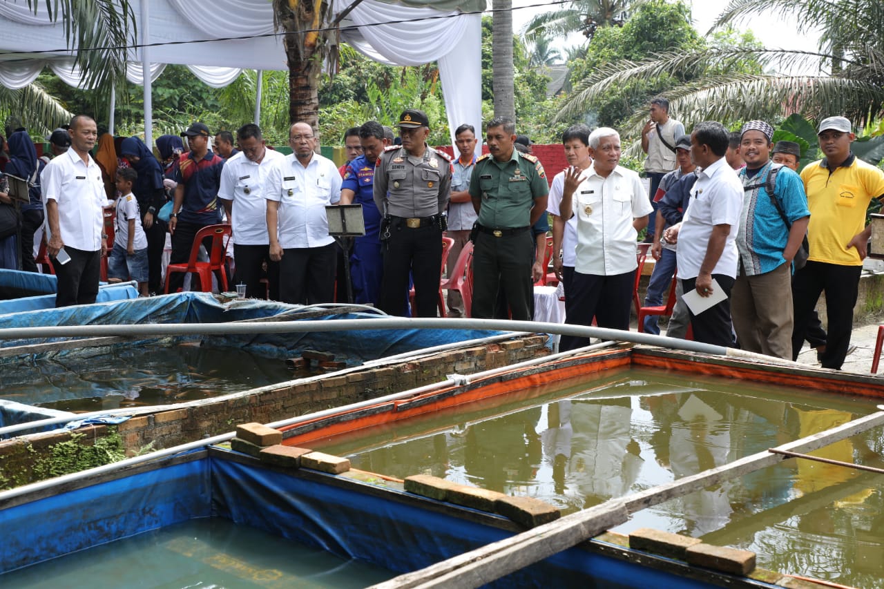 Wakil Bupati Asahan Surya meninjau kolam ikan. |