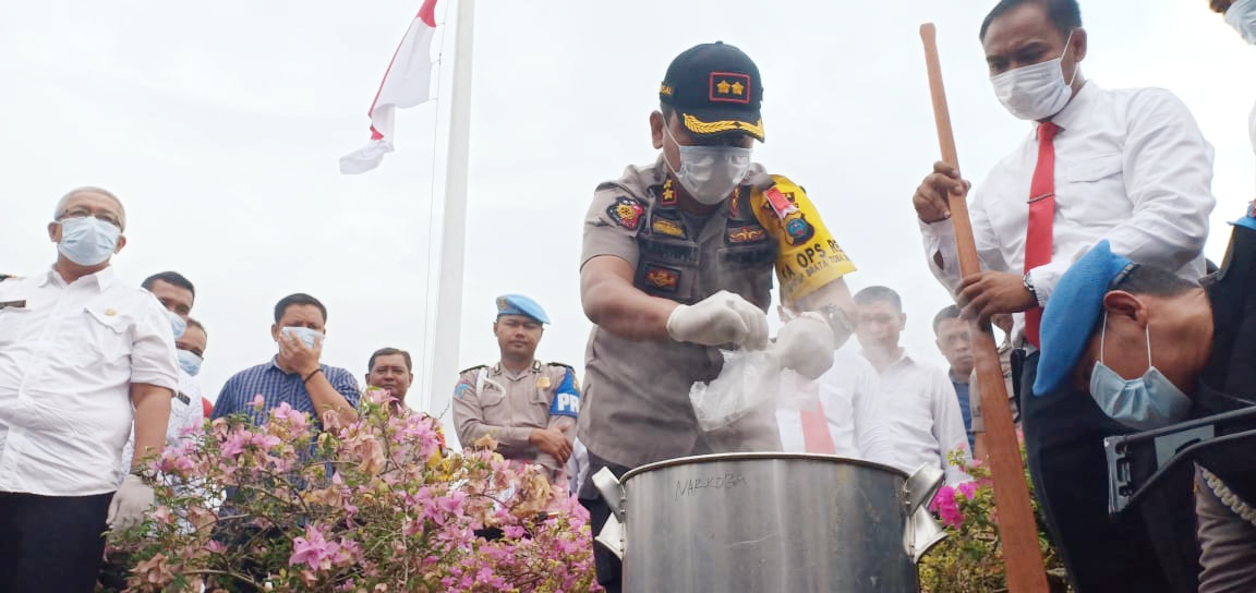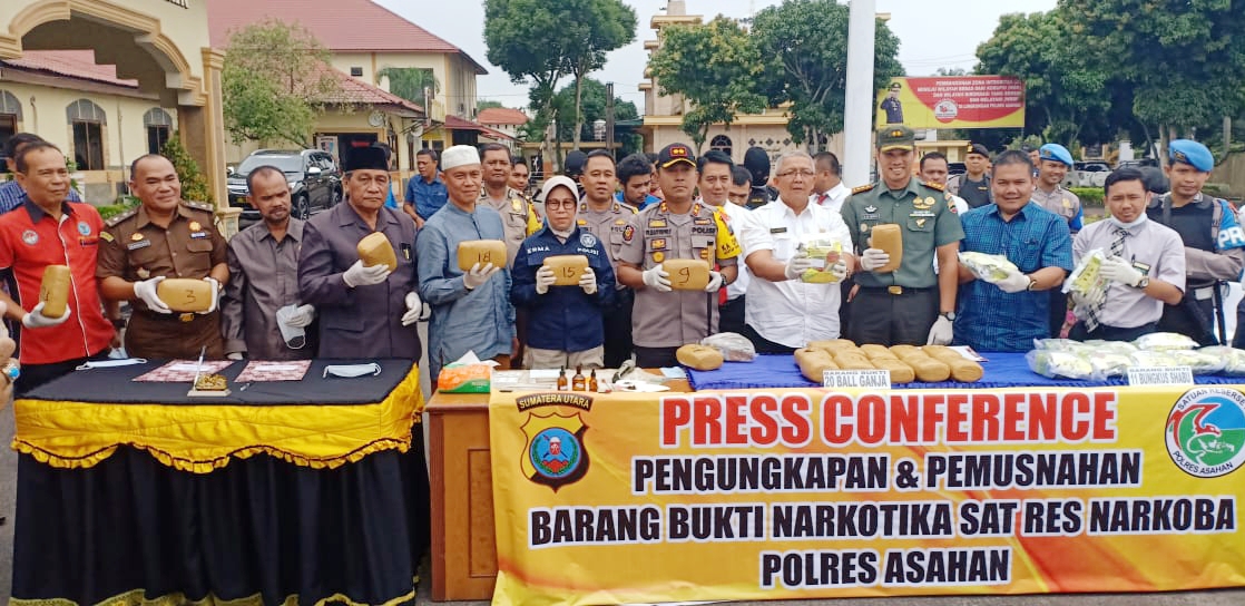 Semua barang bukti tersebut setelah mendapatkan persetujuan dari instansi terkait serta disaksikan tim laboratorium Dit Narkoba Poldasu dan disaksikan Forkopimda Asahan, tokoh masyarakat, tokoh agama dan tokoh pemuda, barang bukti tersebut di musnahkan.