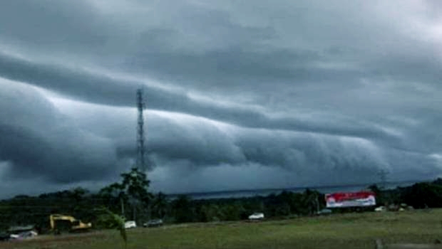 Tampak awan berwarna gelap itu menggulung menyerupai gelombang laut.