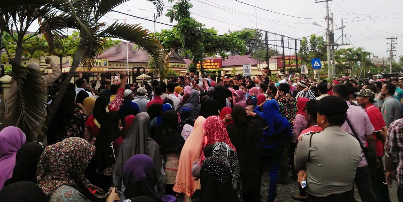 | Ratusan pedagang desak Polres Tanjungbalai untuk melegalkan import pakaian bekas eks luar negeri. |
