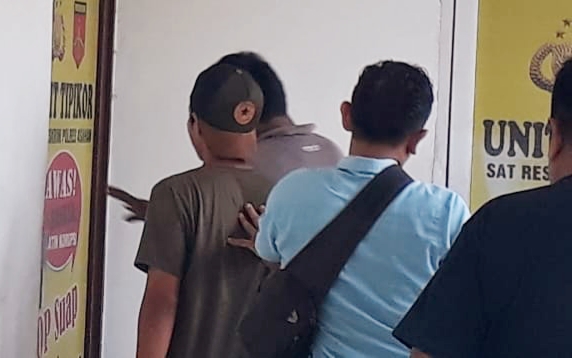 | MUD dan rekannya saat digiring ke ruangan Reskrim Polres Asahan. |